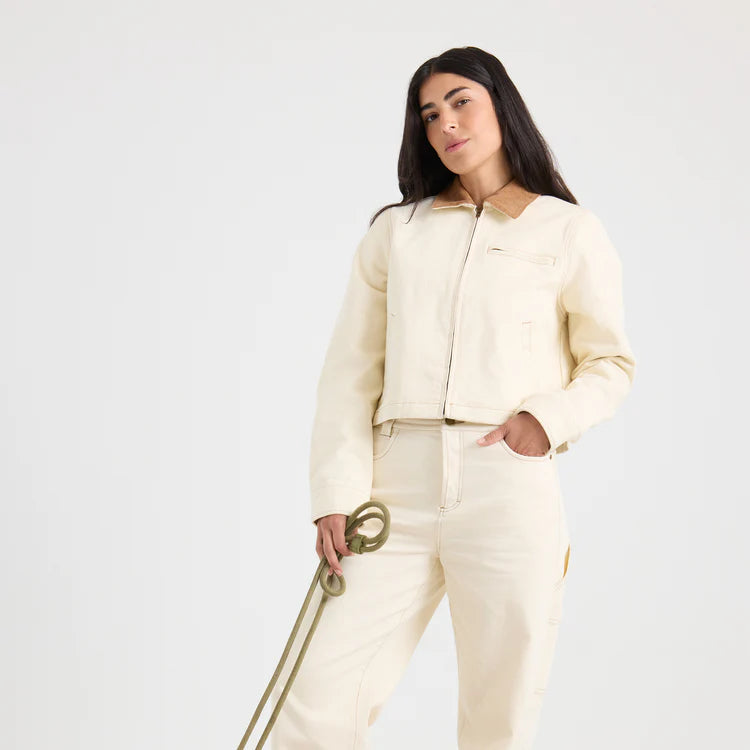 Une veste de garage classique revisitée pour le quotidien. La veste en jean HWY 1 est confectionnée en denim sergé résistant de 340 g/m² avec un délavage vintage pour un effet patiné. Dotée d'un col en velours côtelé contrastant, d'une doublure en sergé de coton et de nombreux rangements fonctionnels, elle se porte facilement par-dessus tout lors des matinées fraîches et des soirées en bord de mer. Avec ses fermetures éclair YKK, ses poches mains aimantées et ses finitions métalliques à l'aspect vieilli, c'est une pièce intemporelle conçue pour vous accompagner saison après saison.