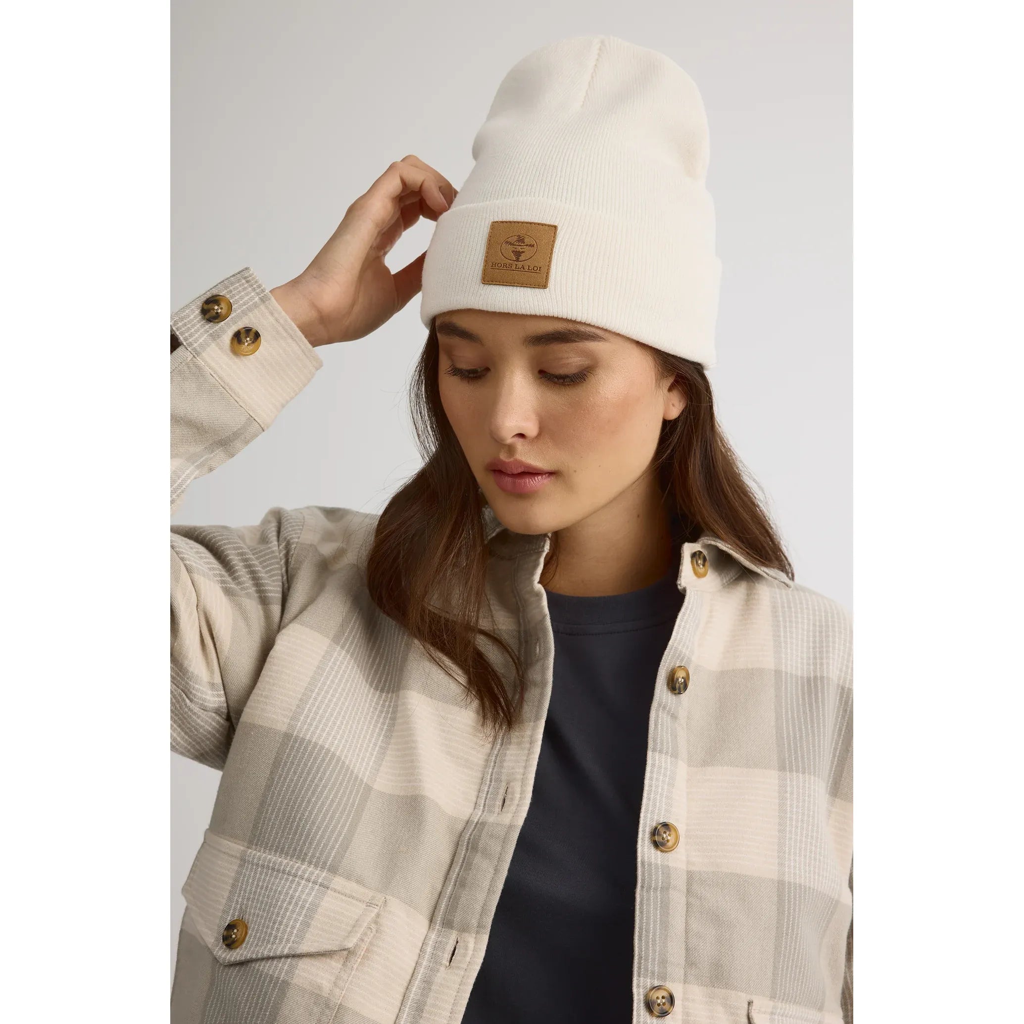 - Logo en similicuir avec signature Hors La Loi à l’avant