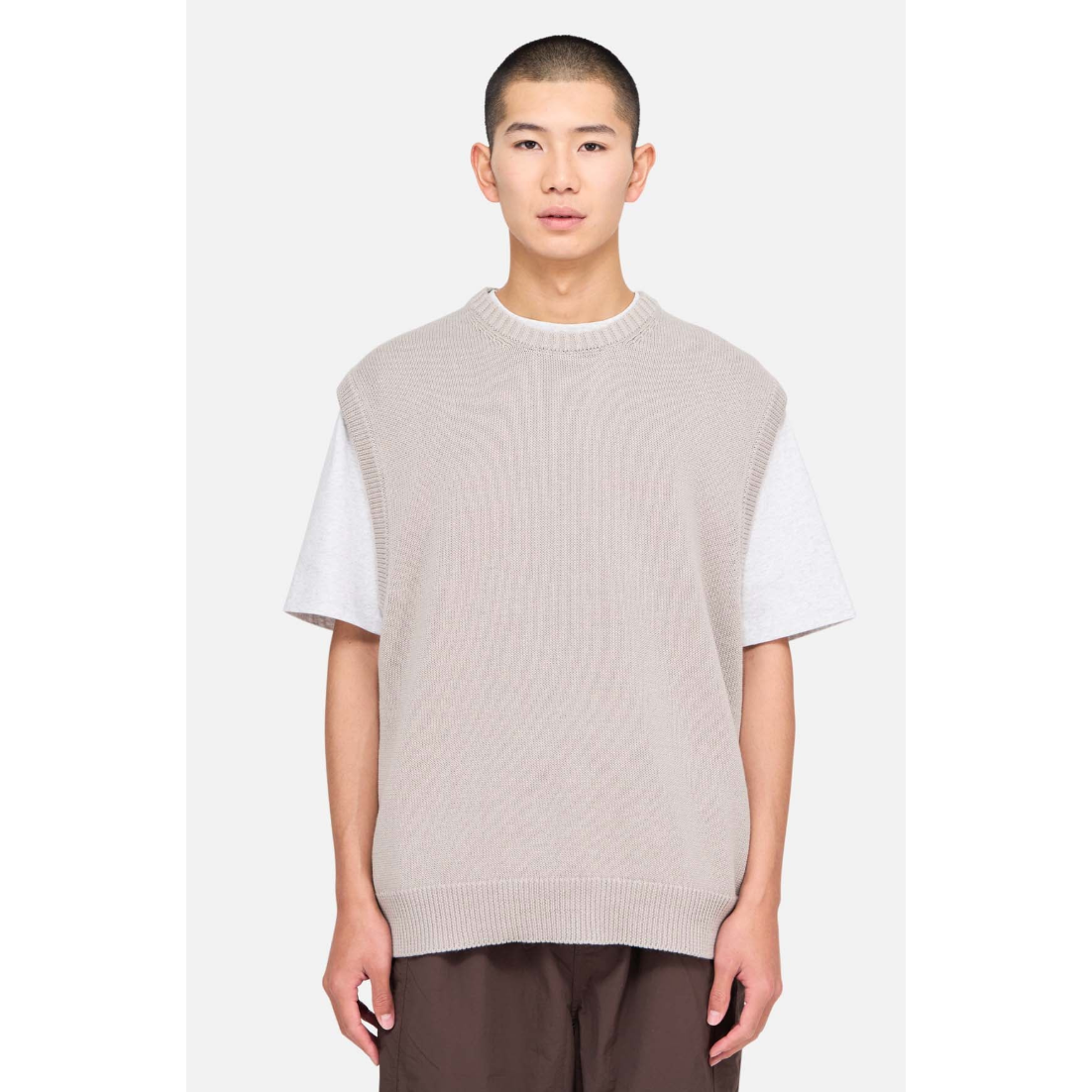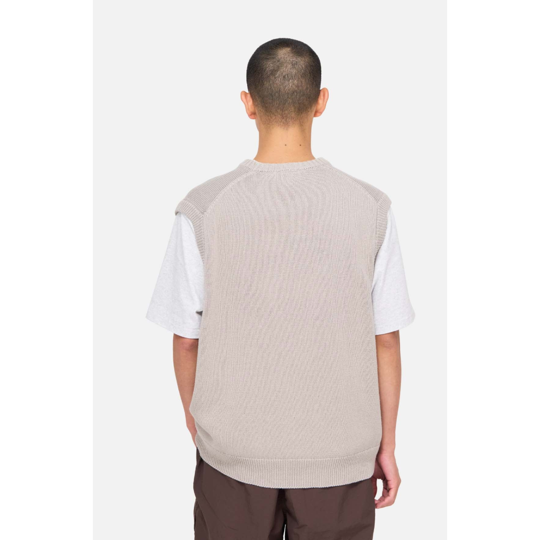 Le Knit Vest est un gilet tricoté à col rond très décontracté, tissé à partir d'un mélange de coton et de lin. Ce tissu le rend beaucoup plus adapté à l'été que la plupart des vêtements en maille, avec une sensation de fraîcheur que vous n'obtenez pas avec la laine. Enfilez-le par-dessus une chemise ou un t-shirt et sortez vous amuser.