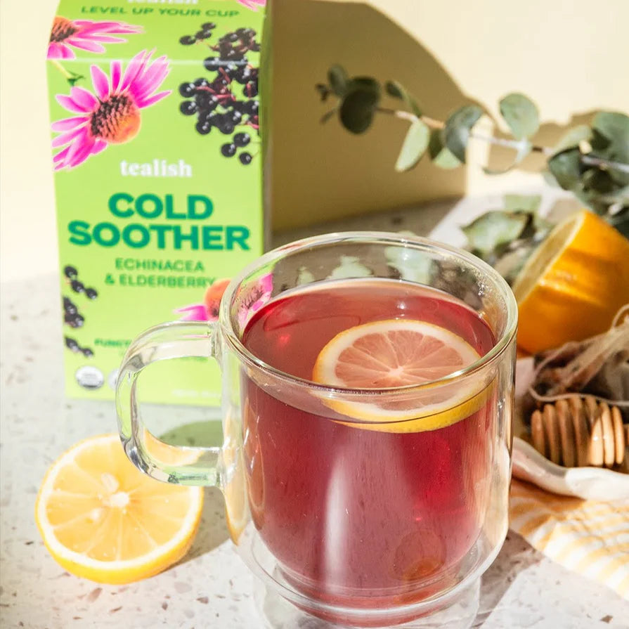 Boostez et apaisez votre corps avec ce thé aux herbes riche en baies de sureau. Élaboré avec une sélection d'ingrédients herbaux nourrissants, ce mélange est votre allié pour renforcer l'immunité naturelle du corps. Enrichi en échinacée et en baies de sureau, et complété par de la pomme, de l’églantier, de l’hibiscus (bonjour les antioxydants !) et du zeste d’orange, ce thé est sûr de soulager vos maux. Ajoutez un généreux filet de citron et de miel pour une tasse encore plus apaisante.