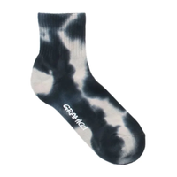 Chaussettes courtes Tie Dye gris clair de Gramicci. Chaussettes en tricot côtelé avec logo brodé sur le pied. Confectionnées en nylon avec un bord souple. Fabriquées en coton.